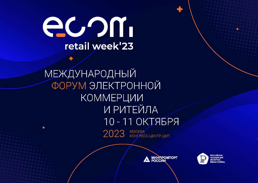 С 10 по 11 октября 2023 года в Москве в Центре Международной Торговли пройдет международный форум ECOM Retail Week, который соберет ведущих экспертов электронной торговли и ритейла. Организаторы форума - Министерство промышленности и торговли Российской Федерации и Российская Ассоциация экспертов рынка ритейла.