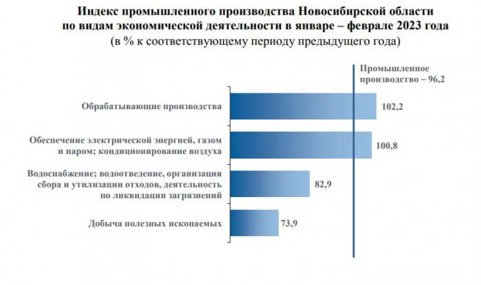 Новосибирскстат опубликовал данные об индексе промышленного производства в Новосибирской области в январе-феврале 2023 года.