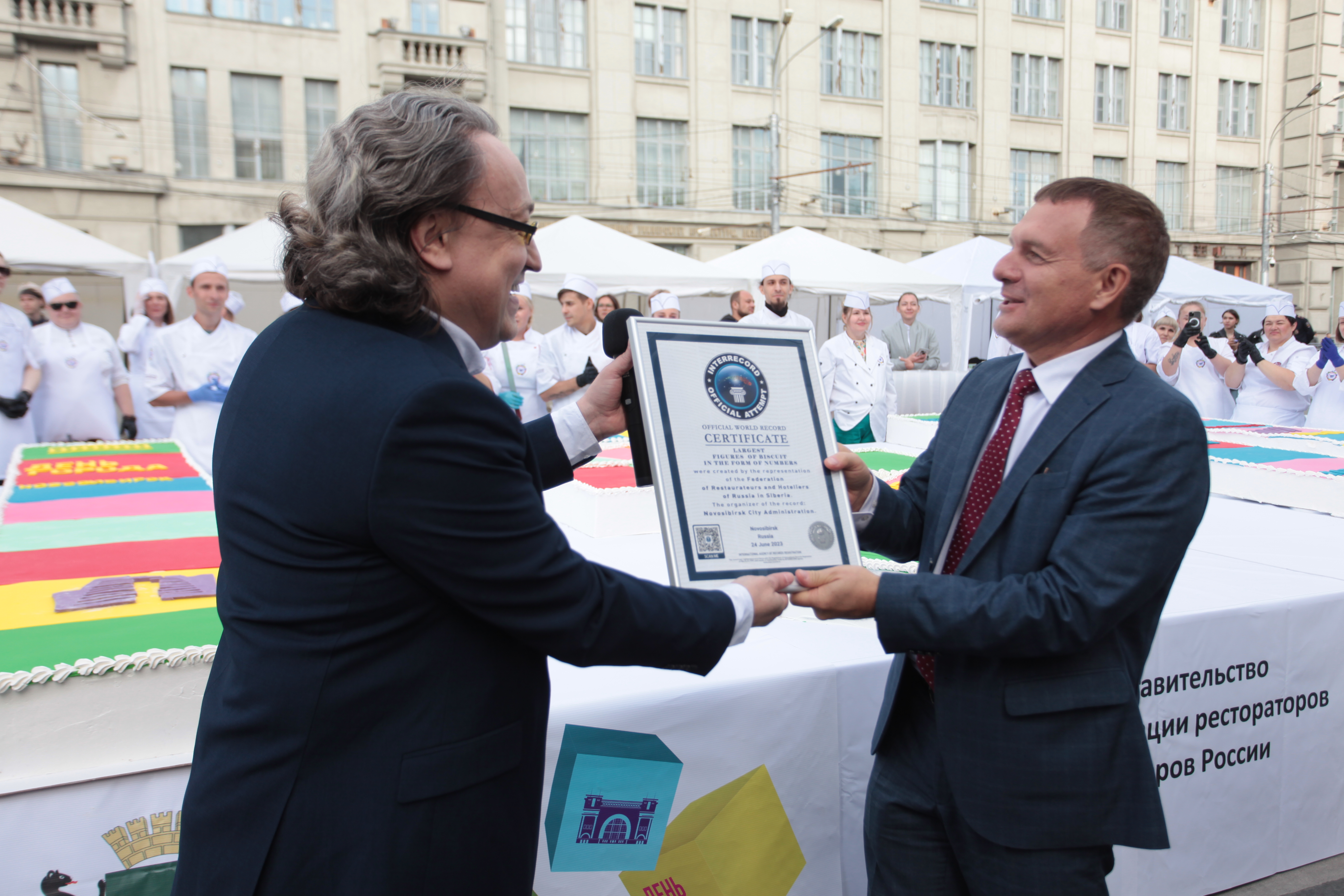 Цифры из бисквита «130», соответствующие возрасту Новосибирска, на которую кулинарные профессионалы нанесли изображения достопримечательностей города, стали рекордом. Их вес 1130 кг. Мировой рекорд зарегистрировал Главный редактор, Генеральный директор Международного агентства регистрации рекордов Интеррекорд Влад Копылов.