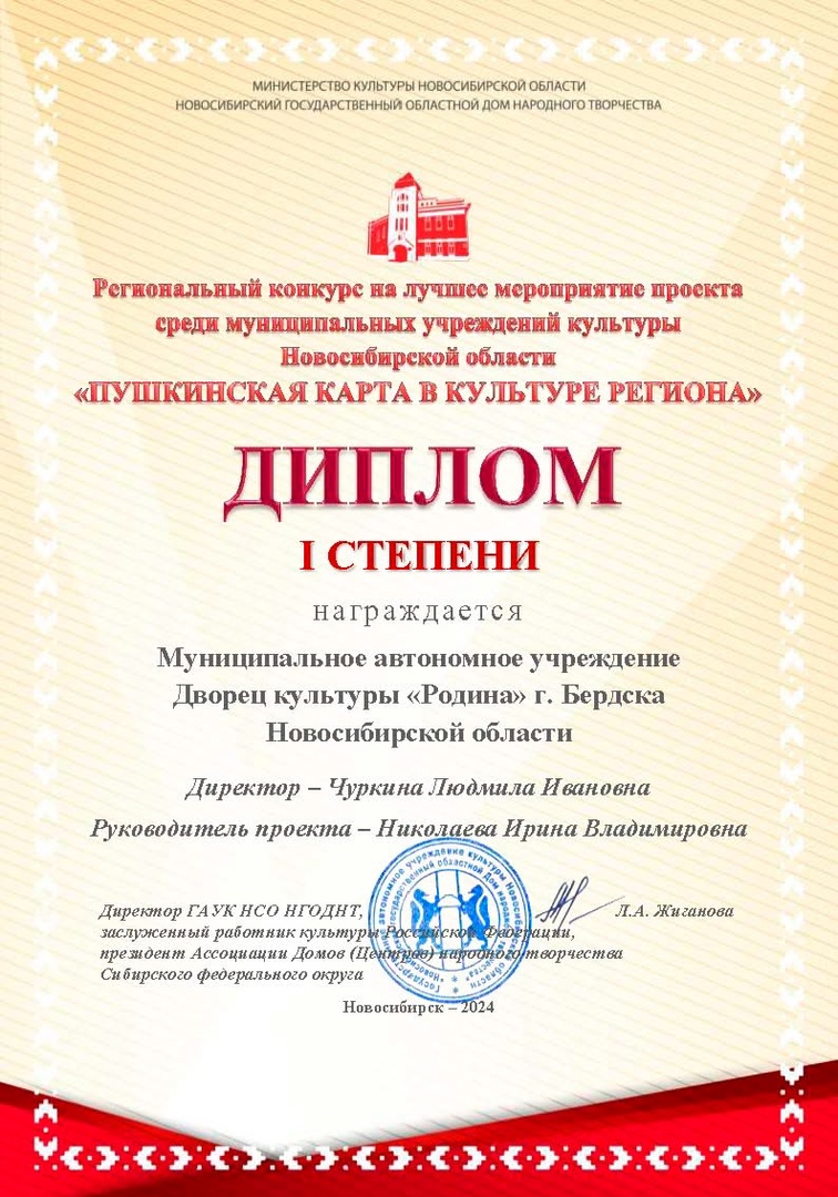 Также мюзикл «Гардемарины! Жизнь – Родине! Честь – никому!» был представлен на Региональный конкурс на лучшее мероприятие среди муниципальных учреждений культуры Новосибирской области «Пушкинская карта в культуре региона» и получил Диплом 1 степени.
