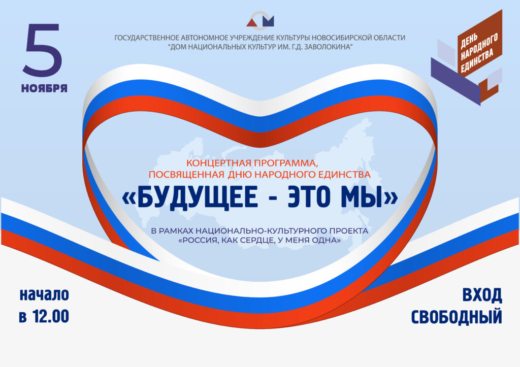 В этот же день в ГАУК НСО «ДНК им. Г. Д. Заволокина» прошла большая концертная программа национальных коллективов «Будущее — это мы!», которая стала частью нового национально – культурного проекта «Россия, как сердце, у меня одна».