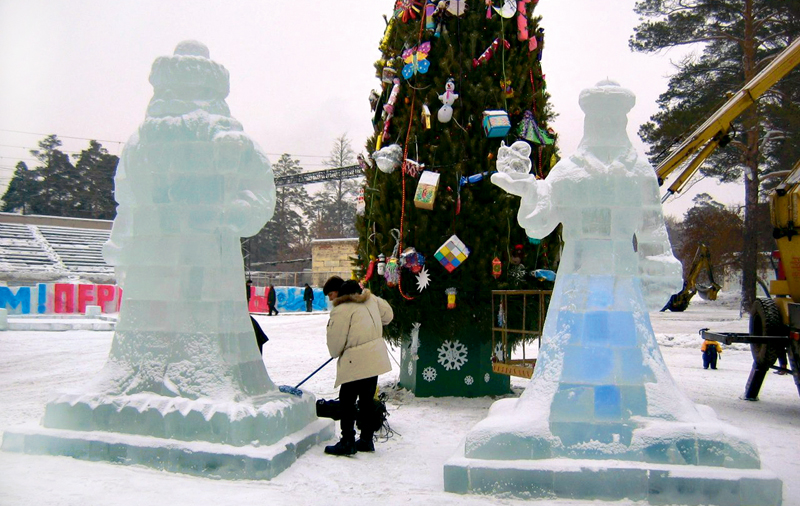 Наступление Нового года всегда ассоциируется со снежными городками, украшенными скульптурными композициями изо льда и снега.