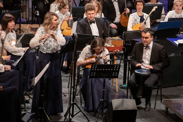 «Пуститься в джаз» предлагала альтовая балалайка в руках Ольги Кушнер. В роли солистов предстали и две — нет, даже три флейты. На одной из них сыграл (можно сказать, «пропел») «Что день грядущий мне готовит» — знаменитую арию Ленского из оперы Чайковского «Евгений Онегин» Аслан Жолдасбаев, вообще-то, играющий в оркестре на барабанах и других ударных инструментах. Еще одна солистка — Анастасия Уланова — кроме привычной флейты в концерте «Оркестр и его солисты» задействовала еще и флейту-пикколо, виртуозно исполнив польку «Шумная птичка». Звенели и пели в руках солистов оркестра — как уже известных, так и только впервые выходящих в этом качестве к публике — домры, балалайки, гитара. Да и ударные музыкальные инструменты тоже не остались в стороне, продемонстрировали всю свою мощь и трепет. Благодаря Аслану Жолдасбаеву и Егору Кобелеву перед публикой предстали не только барабаны, но и экзотический дарбука, корни которого уходят к позднему неолиту. Ему, между прочим, вполне удалась роль солиста.