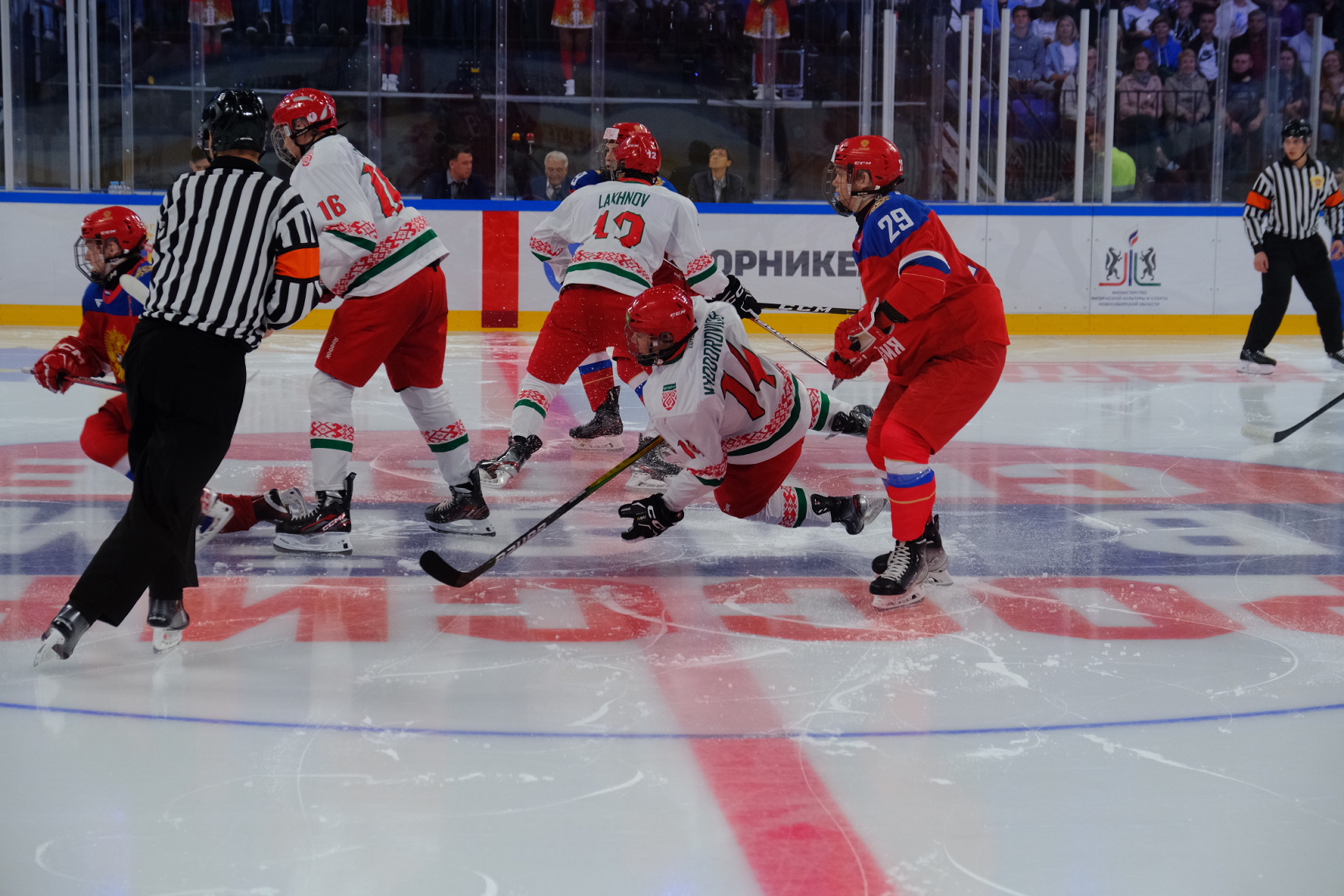 Первый матч на новой ледовой арене в Новосибирске сыграли юниоры Белоруссии и России
