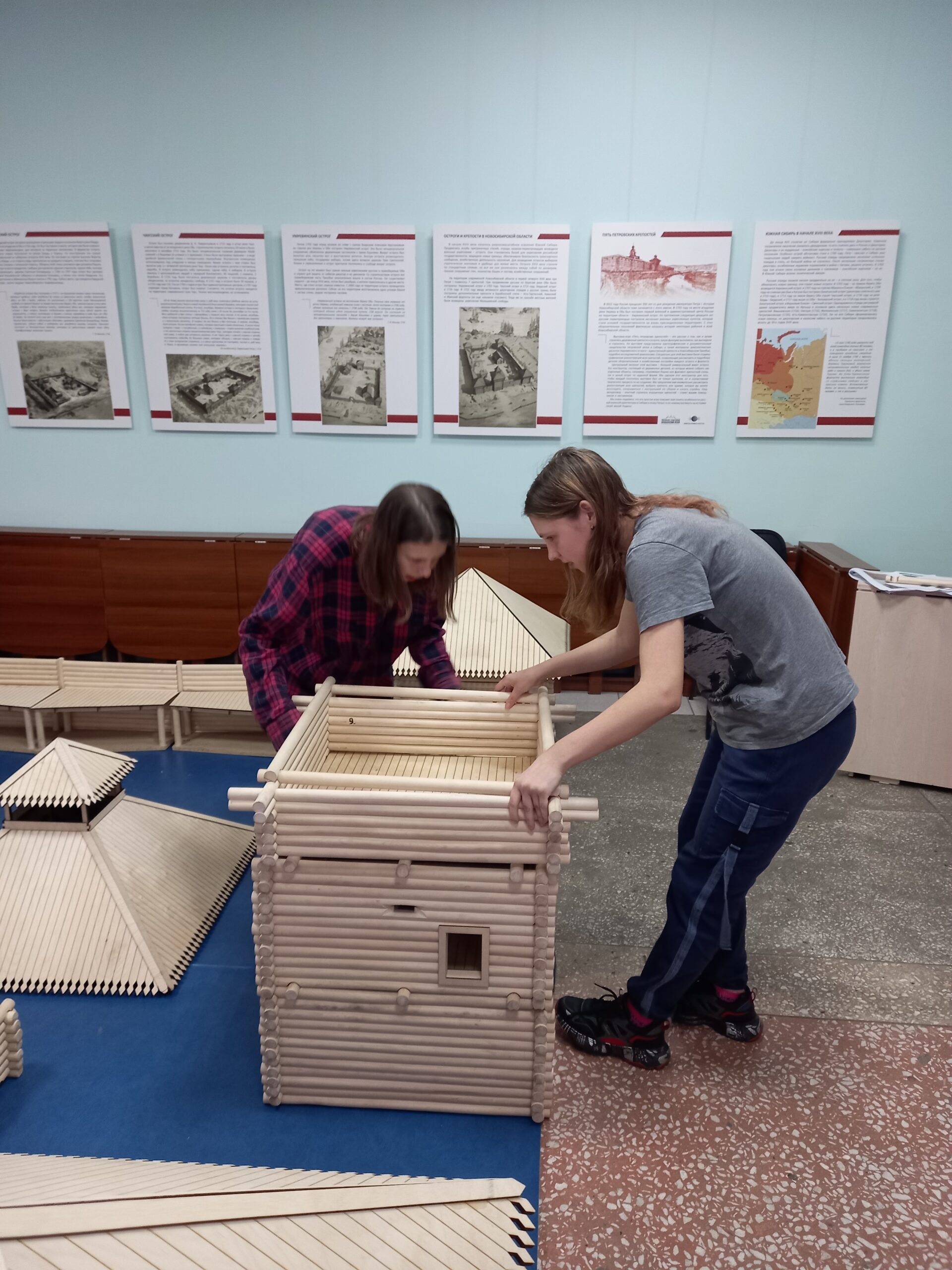 Сегодня в Карасукском краеведческом музее ученики 9 класса МБОУ СОШ № 2 построили настоящий острог 19 века.