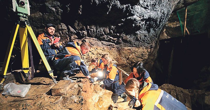 Идут работы в Денисовой пещере.