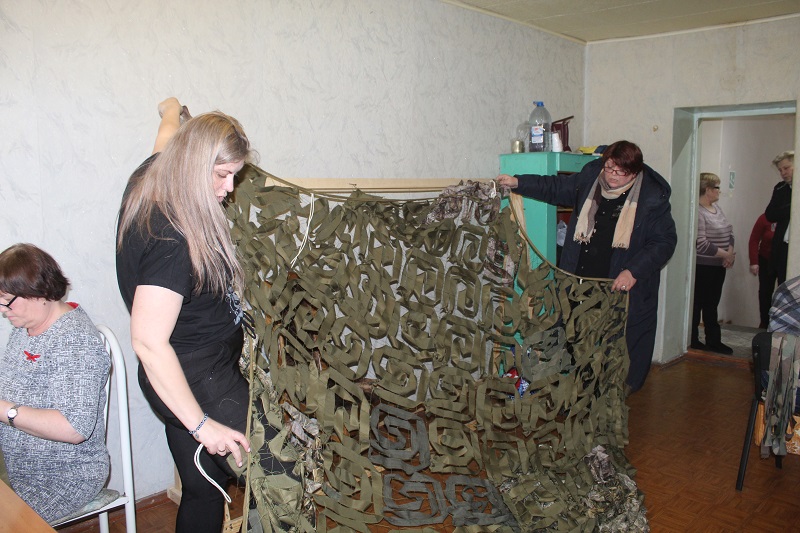 В административном здании бывшего машиностроительного завода, где сейчас расположено предприятие «Призма», кипит работа: в одном из кабинетов женщины плетут маскировочные сети, в другом — нарезают ленточки для них, в третьем — собирают гуманитарную помощь. В отдельном цехе заливают блиндажные свечи. Здесь всё — для Победы!