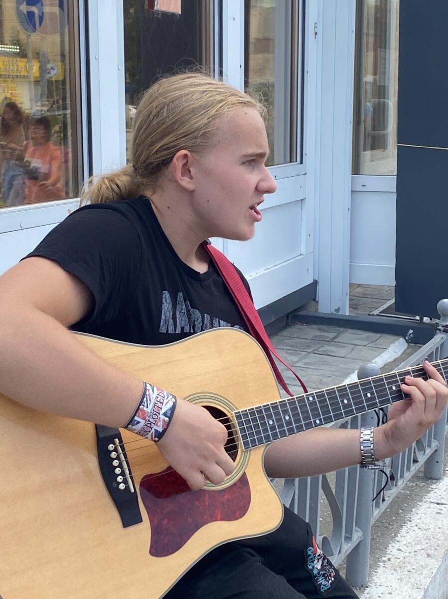 Патриотические песни под гитарные аккорды исполняет бердчанин Захар Репетюк в районе Универмага. В благодарность за музыку прохожие дают уличному гитаристу пожертвования. И нет, он не копит на мечту, не собирает средства на текущие покупки…полученную денежную сумму Захар передаёт российским воинам на СВО.