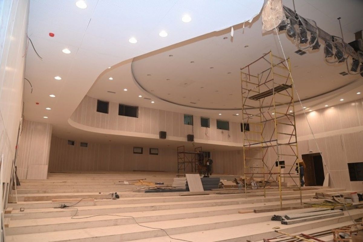 В большом зале районного ДК завершаются отделка потолка, в ближайшее время строители приступят к монтажу стеновых панелей, укладке покрытия пола, расстановке кресел для зрителей.