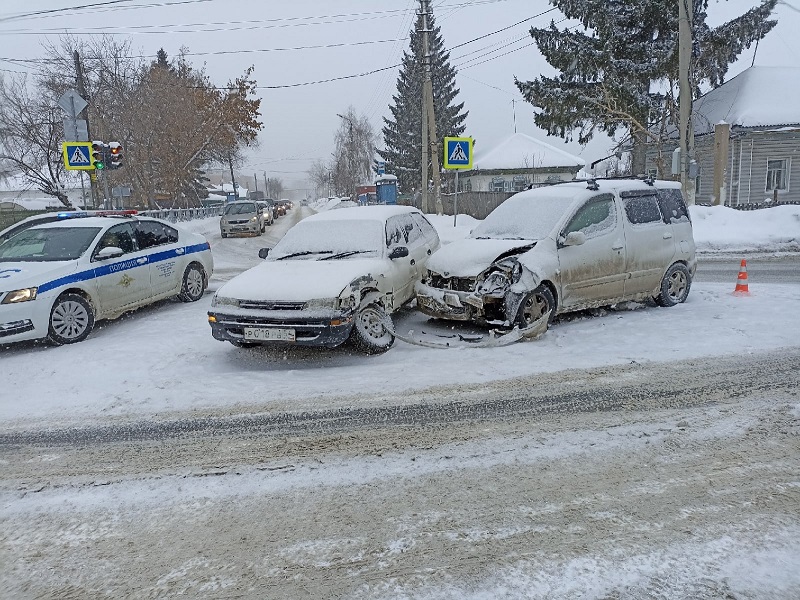 Две «Тойоты» столкнулись на перекрёстке в Бердске в условиях снегопада