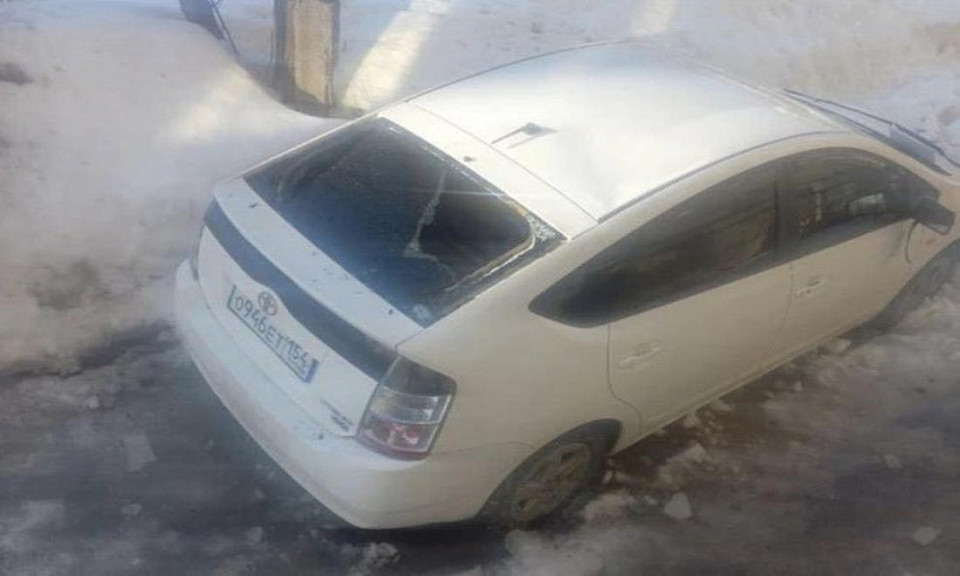 В Новосибирске на улице Грибоедова в Октябрьском районе с крыши пятиэтажки упала глыба льда. Льдина угодила прямиком на припаркованный возле дома автомобиль. Об этом сообщил подписчик в сообществе «АСТ-54» в «ВК».