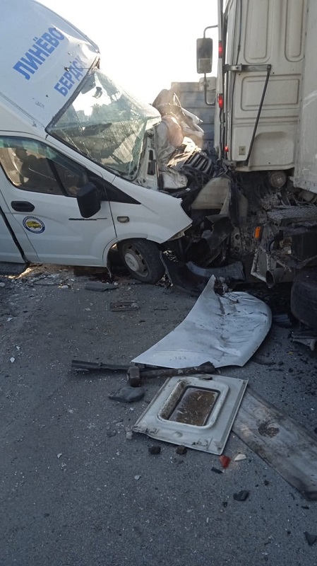 — В маршрутке №551 «Линево-Бердск» находилось 8 человек. От удара «ГАЗель» врезалась во встречный «MAN». А у «DAF» опрокинулся прицеп, который задел ещё одну фуру «MAN». В результате ДТП пострадал водитель «ГАЗели». Предварительный диагноз: сотрясение головного мозга, рана правой руки. Пострадали также два пассажира маршрутки — мужчина и 12-летний мальчик, — уточнили в ГИБДД по НСО.