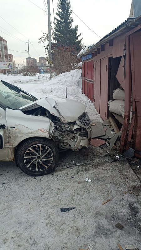 Таксист на Datsun протаранил ворота частного дома, уходя от столкновения с Toyota Ipsum в Бердске