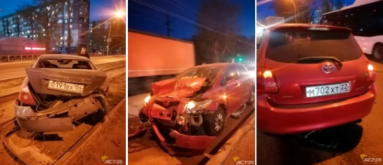 Серьёзное дорожное происшествие произошло поздним вечером 12 мая на территории Кировского района Новосибирска. В результате столкновения автомобили выбросило на трамвайные пути в районе пересечения улиц Петухова и Бородина, пострадали два человека.