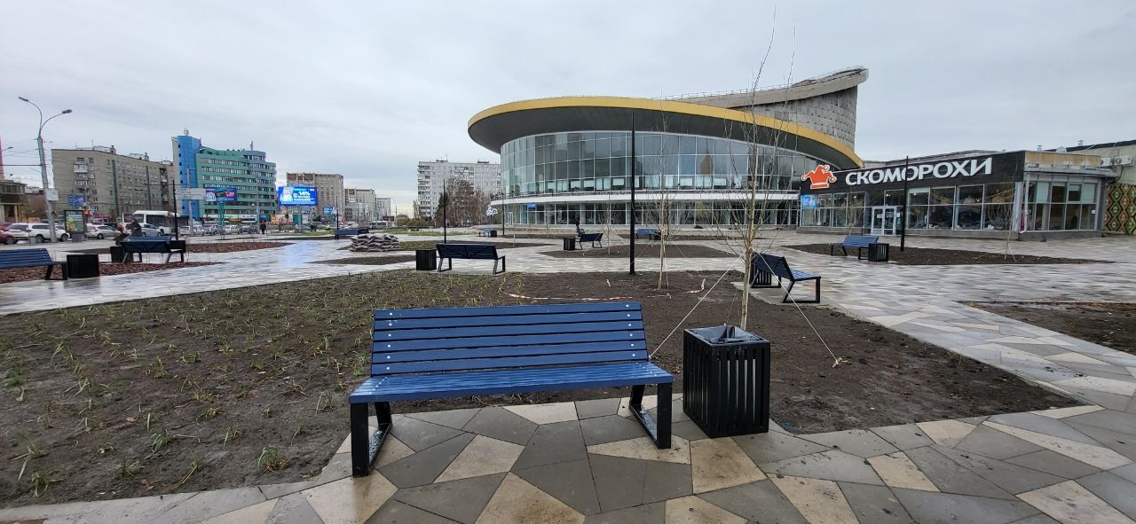 Благоустройство площадки перед Нарымским сквером в Новосибирске завершилось