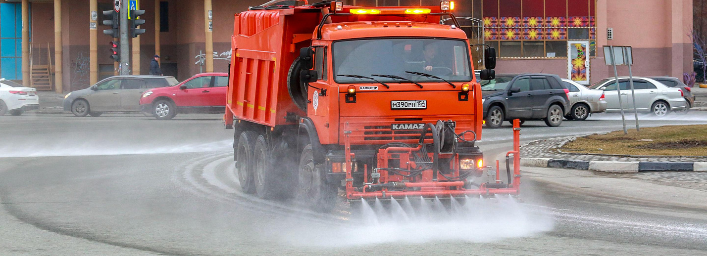 Улицы Новосибирска начали мыть с шампунем. Уборка специальными средствами смывает противогололёдные материалы и помогает бороться с пылью.