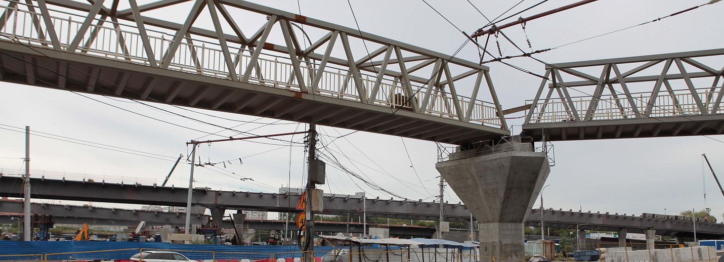 Двухлучевой пешеходный мост поставили на площади Энергетиков: 10 фото