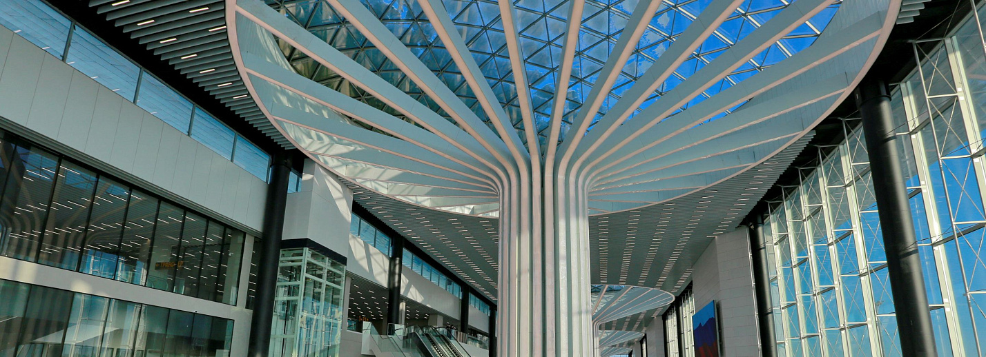 Фото: Павел Комаров, nsknews.info Новый терминал с футуристичными колоннами открыли в аэропорту ТолмачёвоСвершилось: в новосибирском аэропорту Толмачёво официально открыли новый терминал. Его площадь — более 58 000 кв. метров. Выглядит всё невероятно и футуристично: 30-метровые своды подпирают огромные колонны, напоминающие турбины самолета. А фасад и крыша сделаны из стекла. Смотрите наш репортаж с открытия терминала и начинайте уже мечтать о путешествии.