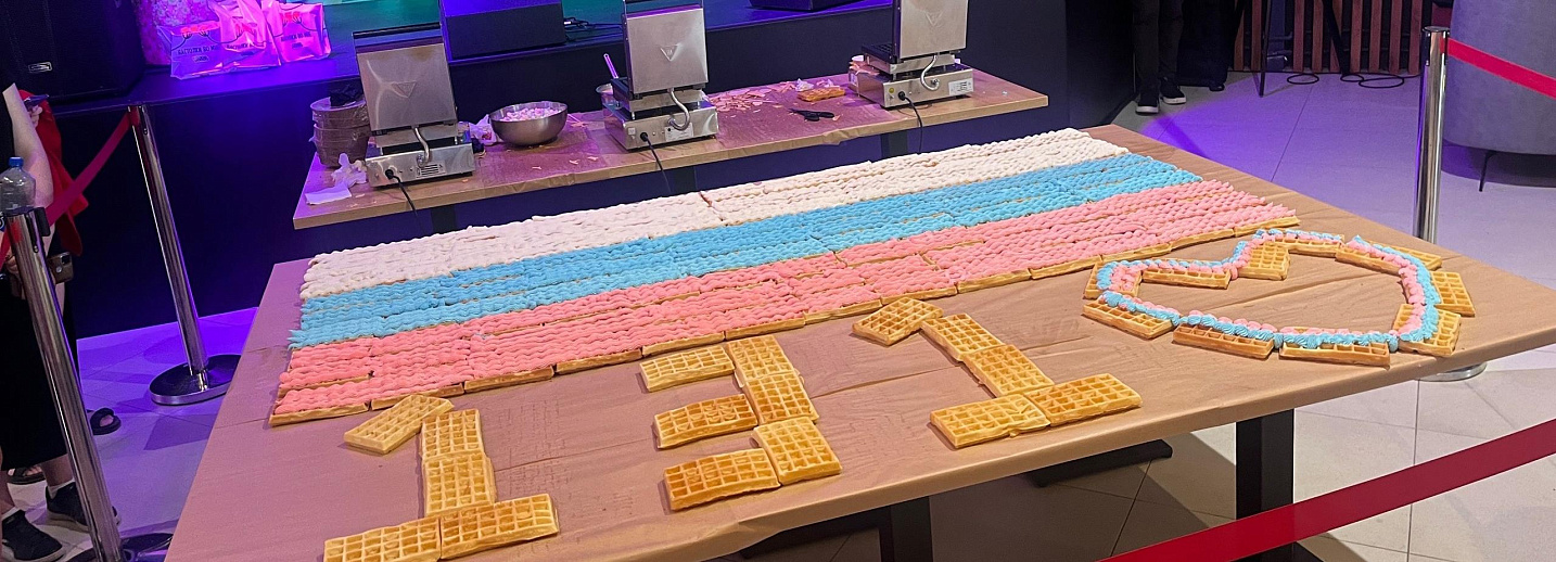 Гигантский десерт из 131 вафли в триколоре испекли в Новосибирске