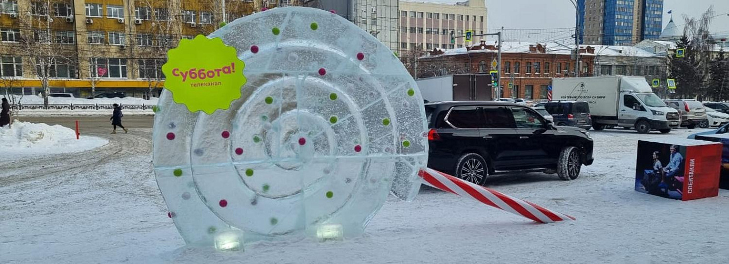 Гигантский леденец появился у кинотеатра в центре Новосибирска