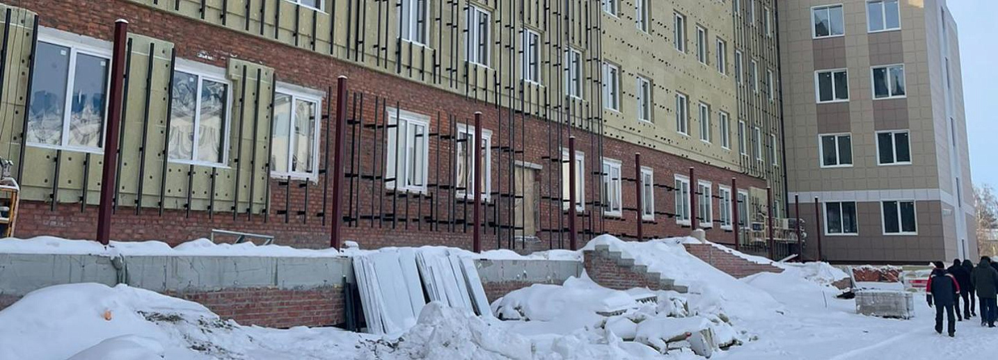 Готовность строящейся поликлиники в Оби оценили на 80%