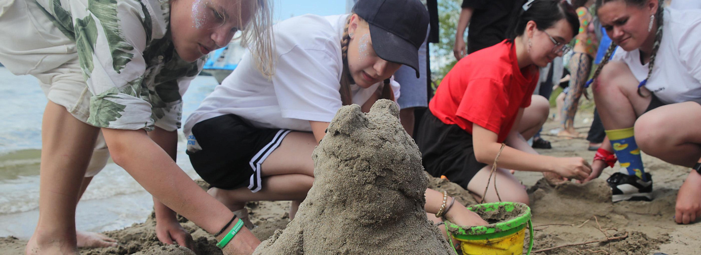 Фигуры, башни, целые города из песка появляются в жаркие летние дни на берегах Оби и Обского моря.