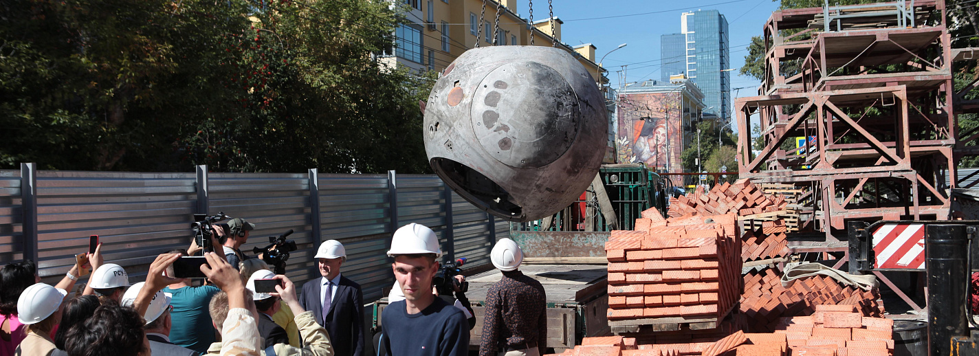 Модуль космического корабля «приземлился» в строящемся музее Кондратюка. Спусковой аппарат «Восток» 1961 года передали из Сибирского научно-исследовательского института авиации имени Чаплыгина.