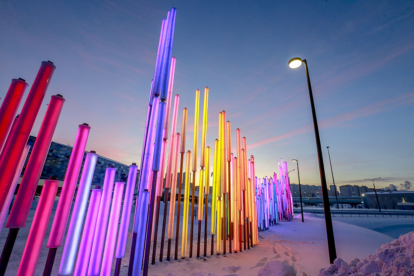 обещали, все обязательства выполнены. В этом году все намеченные этапы закончены и самый главный атрибут — цветная входная зона в форме сосулек. И ёлка особенная! Она не похожа на ту традиционную, которая стоит в центре — эта ёлка интерактивная и сделана с помощью светодиодов и современных технологий. Игрушки, украшения и подсветка постоянно меняются. То ёлка синяя, то зеленая, то с шариками, то превращается в ракету — того и гляди взлетит! Эти чудеса происходят у