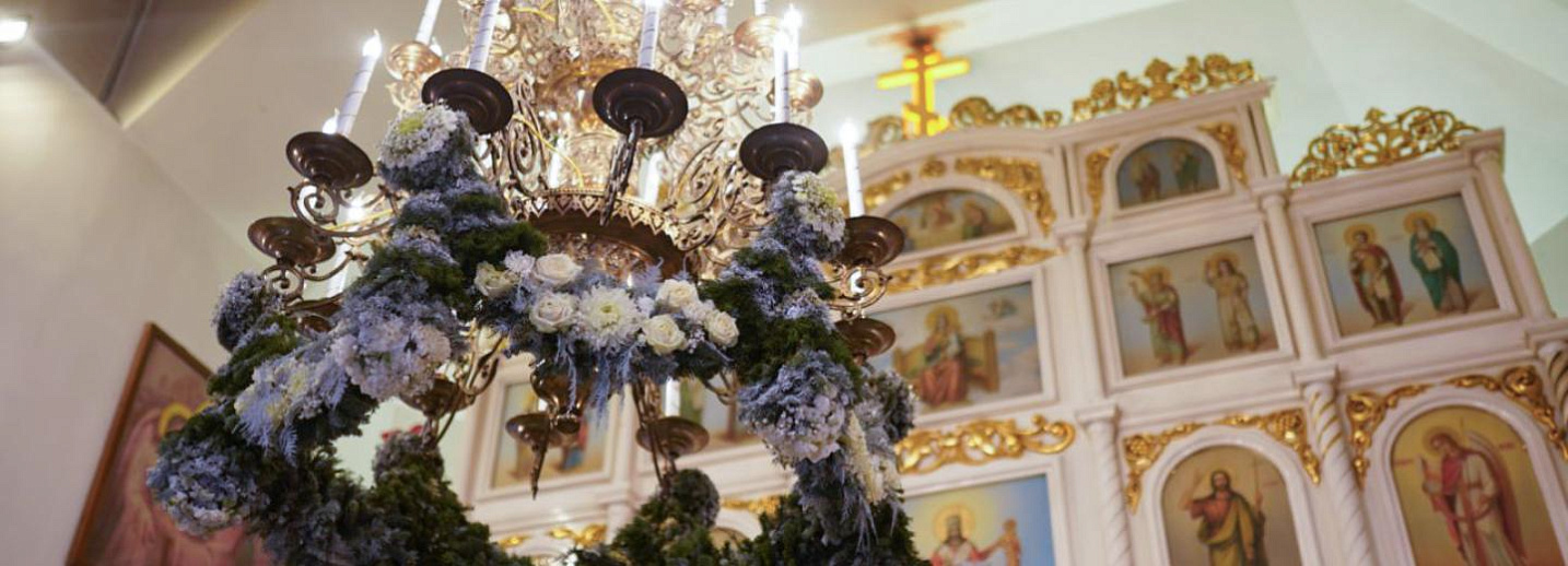 Нежными гирляндами из цветов украсили новосибирские храмы к Рождеству