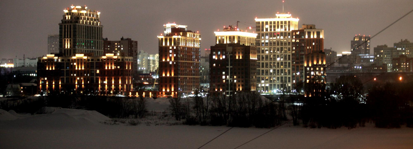 ЖК «Ричмонд Резиденс» на Кирова, 50 по ночам светится, как новогодняя ёлка. На двух башнях — по шесть рядов фонарей. Рядом застройщик поставил большие часы, напоминающие лондонский Биг-Бен. Высотная застройка вокруг станции метро «Октябрьская» формирует в Новосибирске свой Ла-Дефанс. Совсем скоро в эксплуатацию введут ЖК «Чикаго» с двумя башнями высотой больше 100 метров. Разумеется, им смонтируют ночную подсветку.