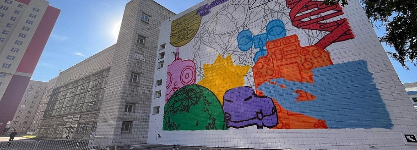 Погода нас немного подвела, в отдельные дни дул сильный ветер. Пришлось взять небольшой тайм-аут.— Что изображено на картине? У мурала есть своя философия?