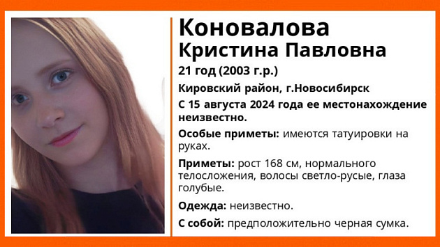 С 15 августа 2024 года в Кировском районе Новосибирска без вести пропала 21-летняя Кристина Коновалова. Поиски девушки продолжаются, и на их помощь пришли волонтеры поисково-спасательного отряда «ЛизаАлерт».