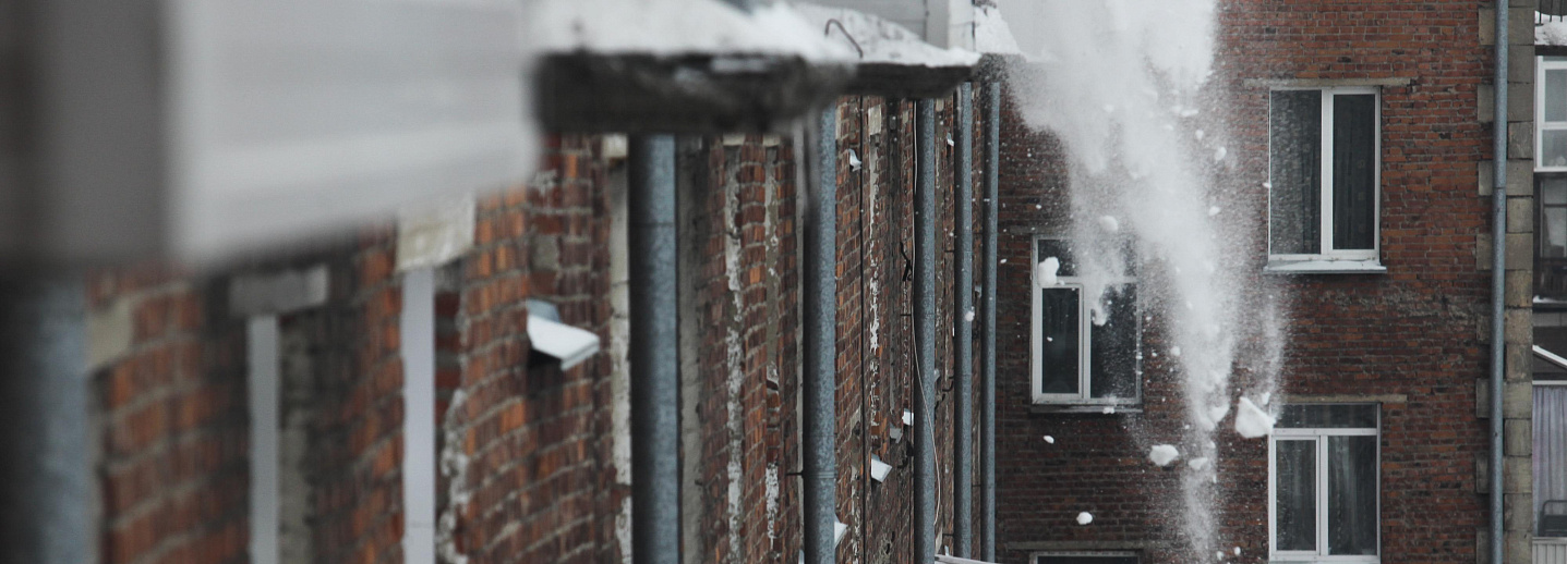 Городские власти потребовали от управляющих компаний срочно почистить крыши жилых домов и огородить опасные места сигнальными лентами.