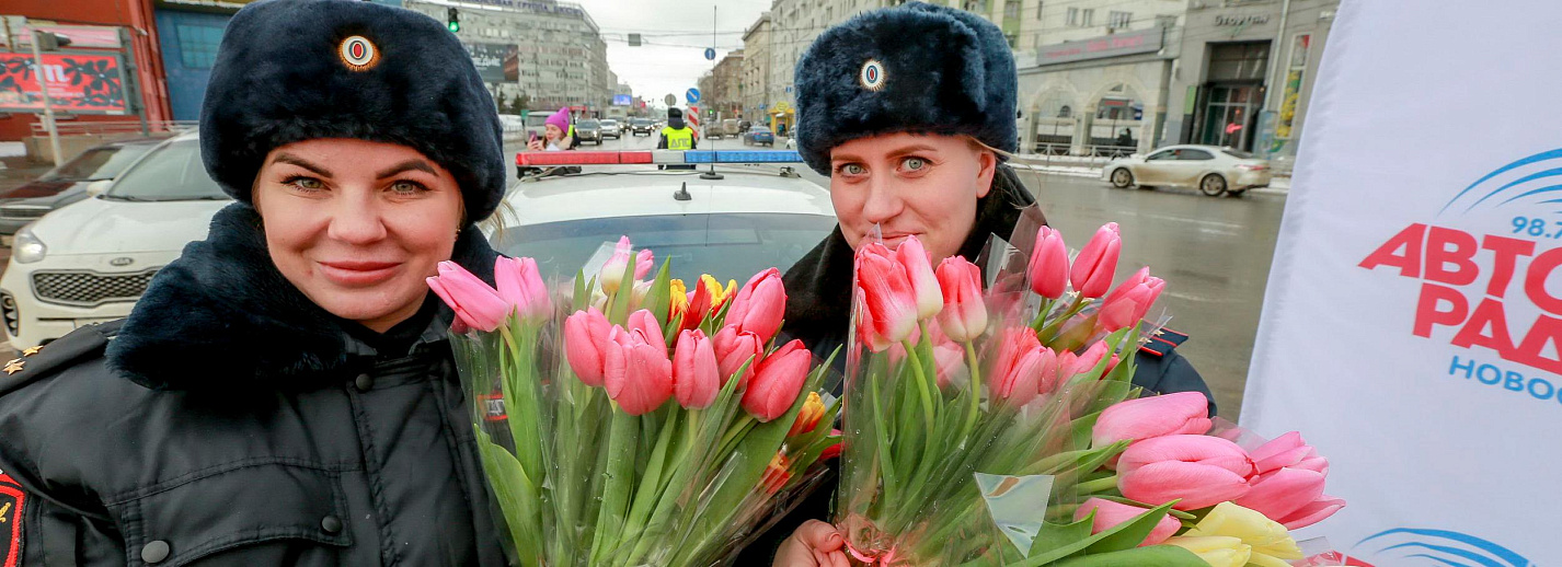 Сотрудники ГИБДД раздали тюльпаны женщинам-водителям в Новосибирске