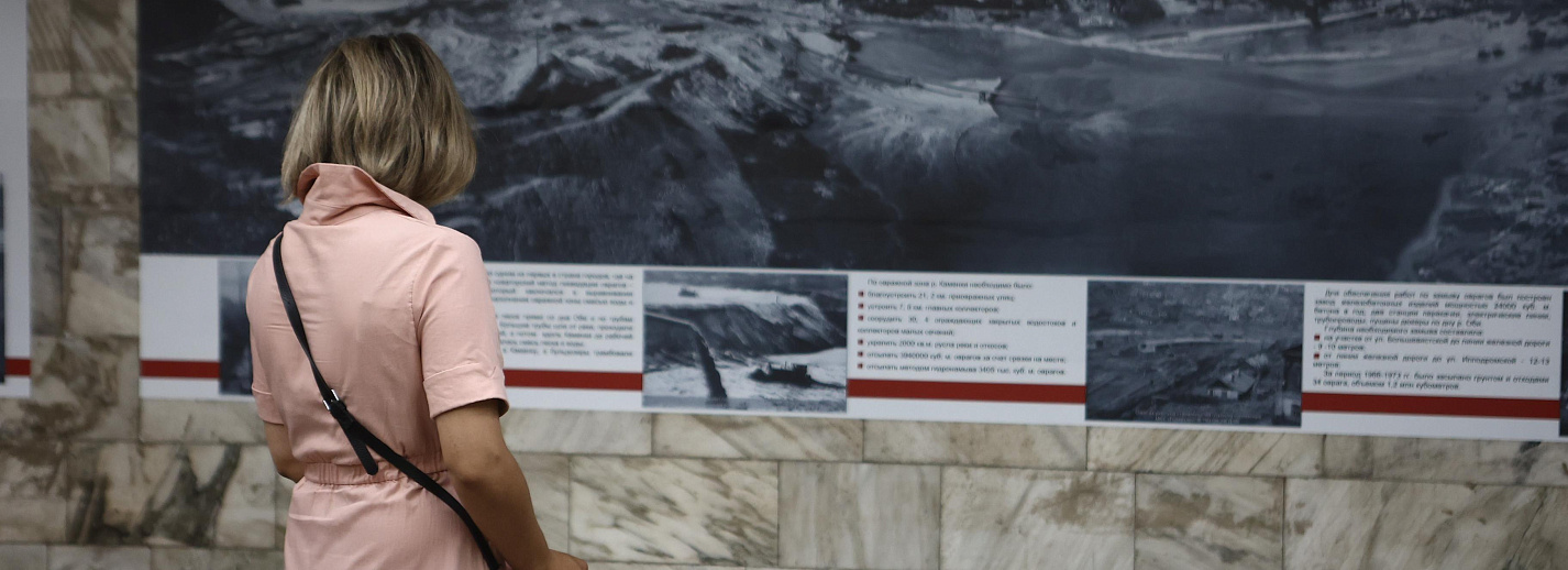 Выставку «Фундамент для мегаполиса: о ликвидации оврагов в Новосибирске» открыли в переходе метро на станции «Площадь Ленина».