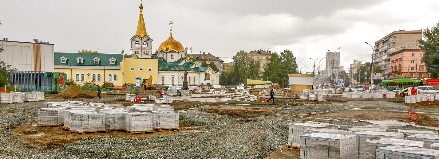 Там уложили большую часть брусчатки, сейчас восстанавливают центральную лестницу Нарымского сквера,