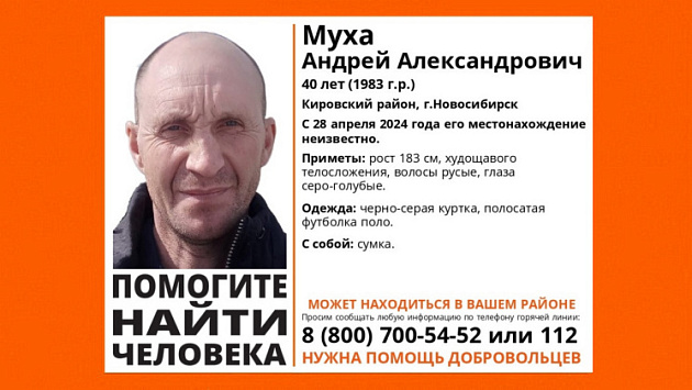 С 28 апреля 2024 года местонахождение сибиряка неизвестно - на его поиски отправились волонтеры В Кировском районе Новосибирска без вести пропал 40-летний Андрей Муха.