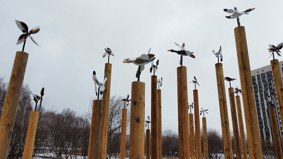 В парке «Каменка» появились флюгеры в виде стаи уток