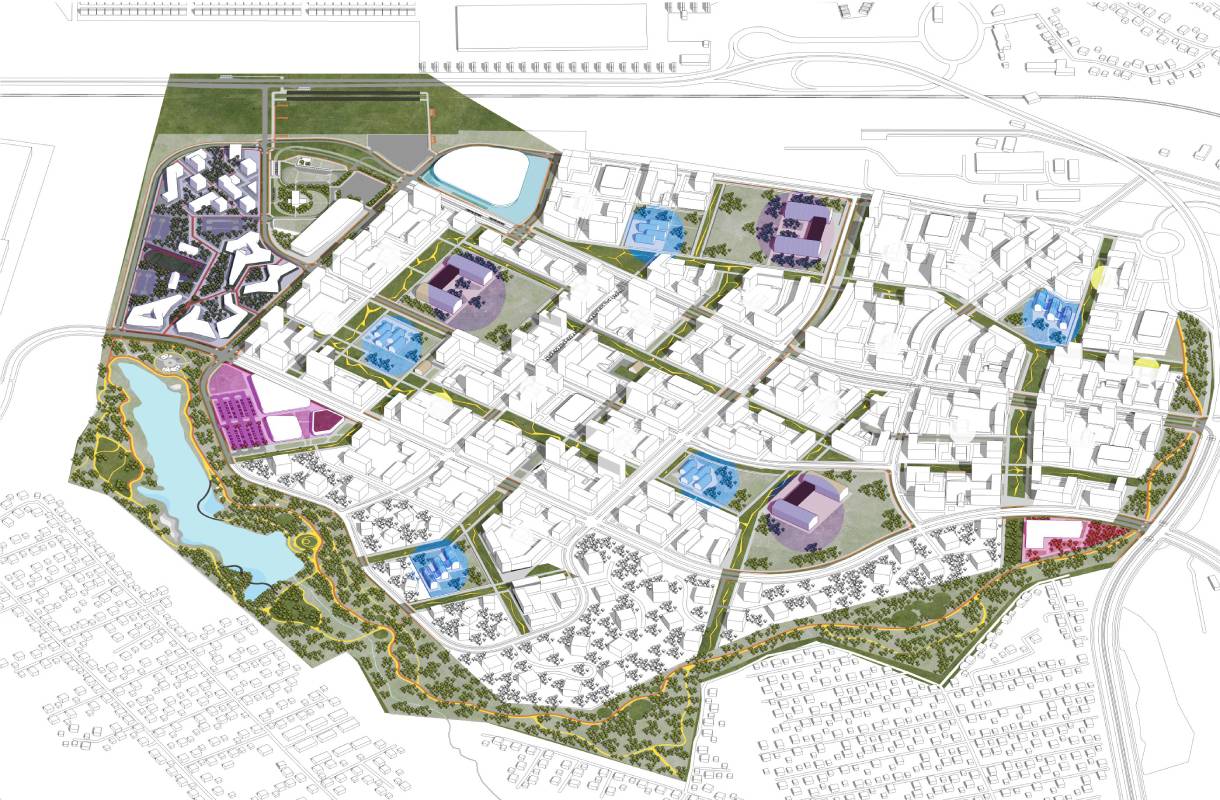 При застройке территории «Клюквенного» сохраняется главный принцип — комплексность подхода: на территории общей площадью 207 га будут построены 1 млн кв. м жилья трех уровней этажности, пять школ, три детских сада, поликлиника с подстанцией скорой помощи, спортивные, торговые центры, парки отдыха и зеленые зоны. Кроме того, на первом этапе проекта здесь будет сформирован образовательный кластер по концепции «детский сад – школа – СПО».