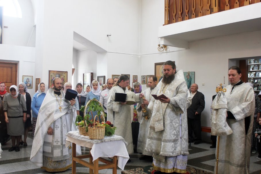 По завершении Литургии епископ Филипп совершил чин освящения плодов нового урожая. Наливные яблоки и другие плоды нового урожая, принесенные прихожанами в знак благодарности Господу, были окроплены святой водой. Традиция освящения наиболее распространенного в России плода — яблока — дала народное название празднику Преображения