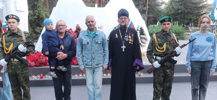 21 июня протоиерей Евгений Зверев, настоятель храма во имя прп. Сергия Радонежского р. п. Краснозерское, посетил акцию “Свеча памяти”, которая прошла на Монументе Славы р. п. Краснозерское.