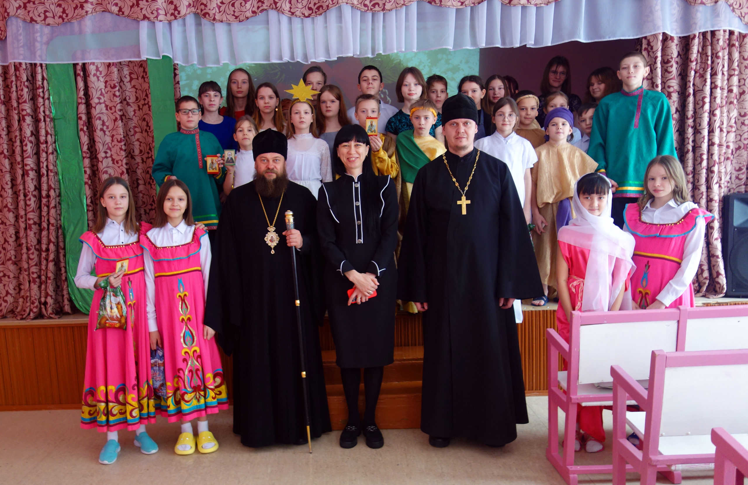 Дети с нескрываемой радостью ждали приезд Владыки. По традиции детишки подготовили рождественский концерт, по окончании которого Владыка провел для них настоящий экзамен: воспитанникам школы были заданы довольно непростые вопросы, связанные с историей праздника Рождества Христова. И архиерей был сполна удовлетворен их ответами: в них раскрывался смысл этого любимого всеми волшебного праздника, и при этом было столько детской искренности!