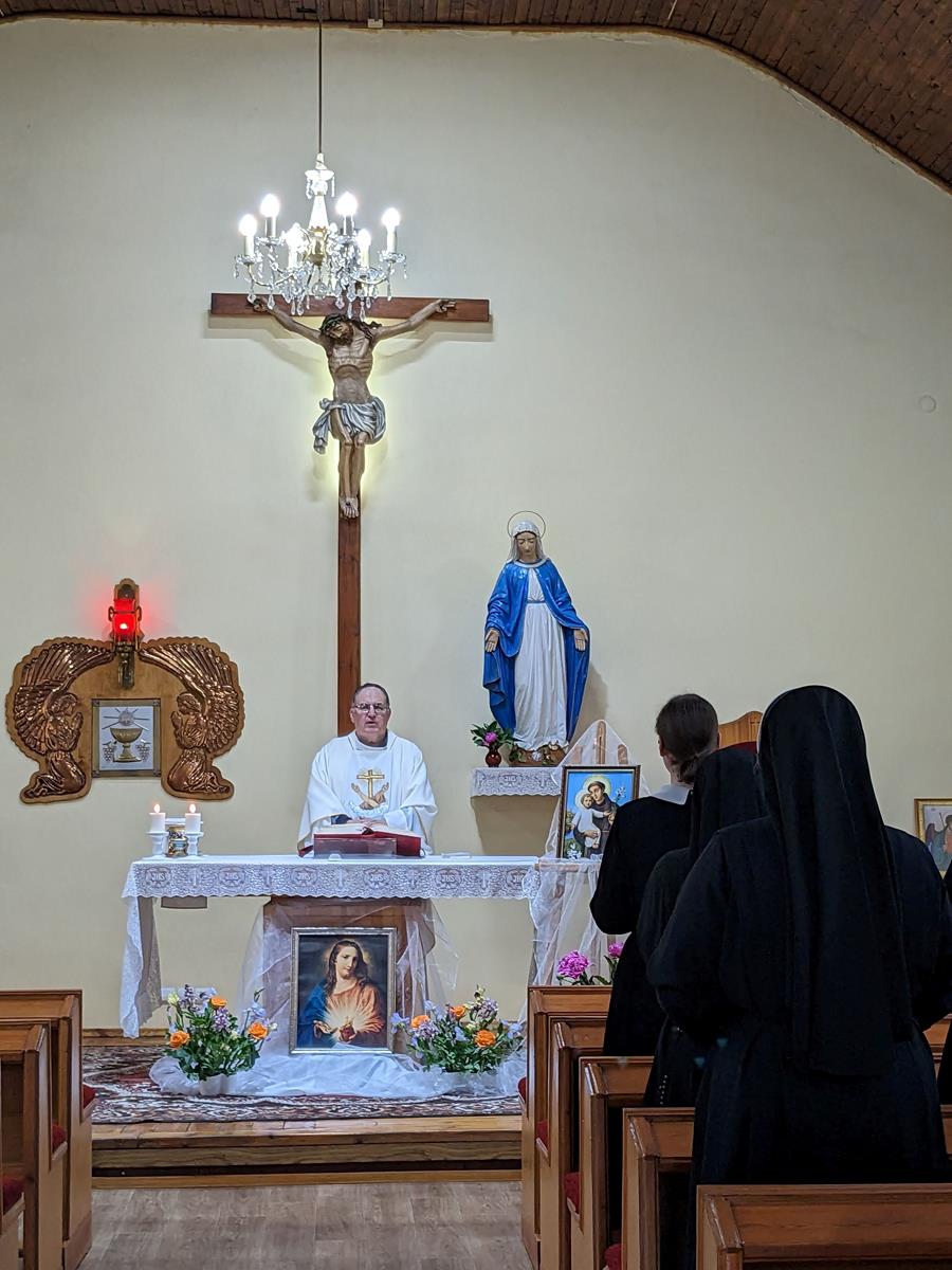 Праздничную Литургию в этот день служил настоятель Крестовоздвиженской обители отец Коррадо Трабукки, OFM . Свою проповедь на Мессе он начал со слов: «Эту проповедь, я подготовил для детей, поэтому Вы дорогие взрослые побудьте тоже немного детьми».