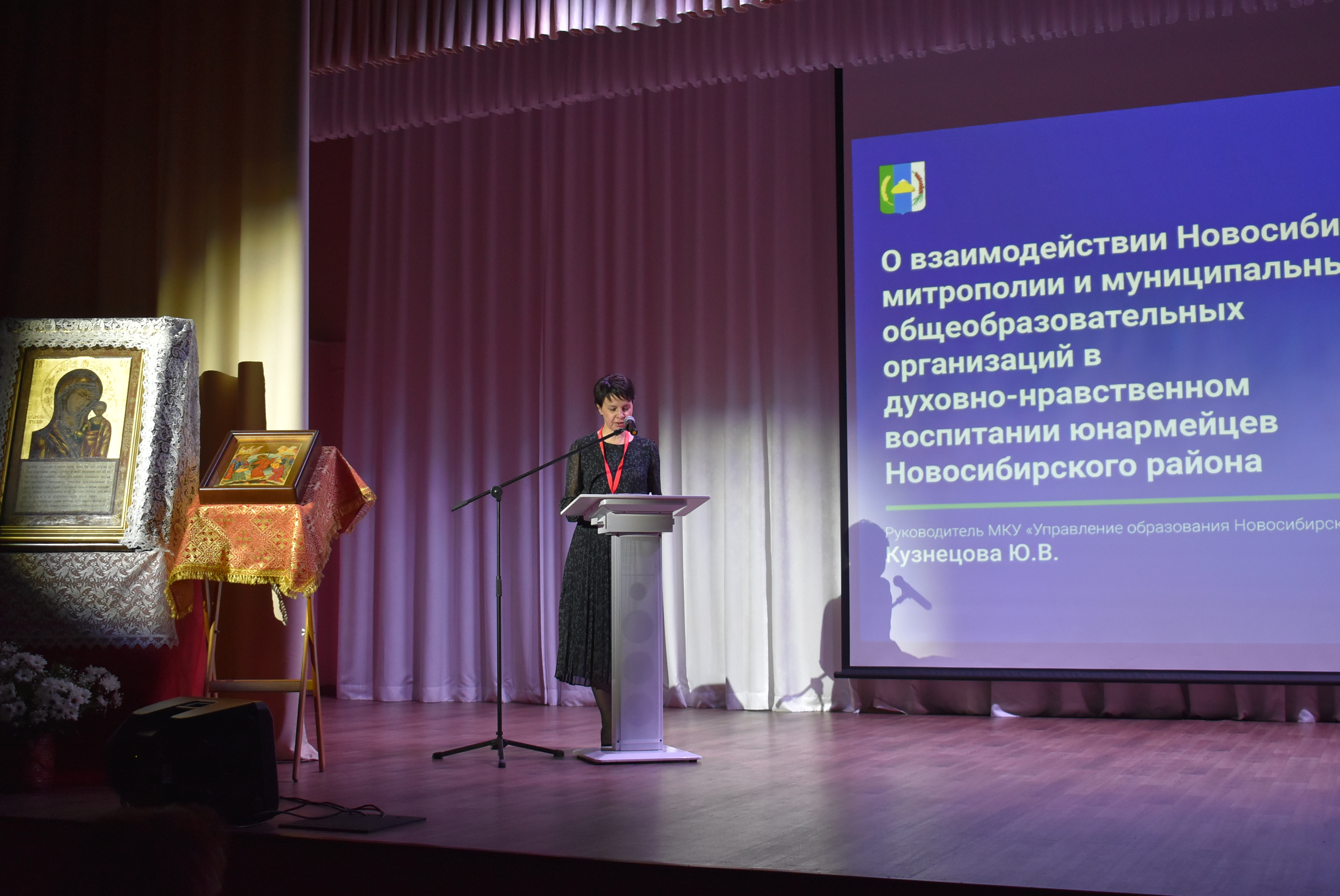 Опыт взаимодействия Новосибирской митрополии и муниципальных общеобразовательных организаций в духовно-нравственном воспитании юнармейцев Новосибирского района представила руководитель районного управления образования Юлия Кузнецова. Задача такого взаимодействия – развитие духовного наставничества. Священнослужители проводят беседы со школьниками по духовно-нравственной тематике и профилактике деструктивного поведения. С 2021 года клирик собора Александра Невского иерей Борис Левитан был назначен ответственным за духовное окормление юнармейцев. Протоиерей Александр Новопашин провел ряд профилактических бесед со школьниками во всех сельских советах района. Обозначила Юлия Владимировна ключевые задачи на 2023 год – совершенствование муниципальной системы патриотического воспитания, обобщение материалов о приходах, церквях, храмах, знаменитых иконах для краеведческого пособия в Новосибирском районе, продолжение работы по увековечиванию памяти воинов-героев.