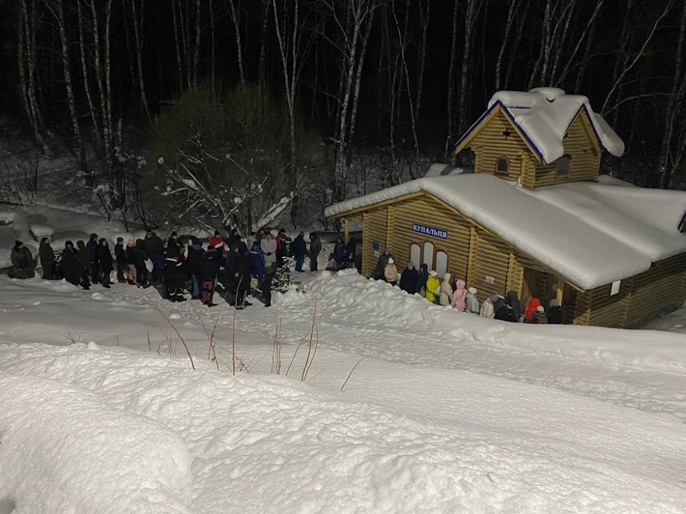 После обряда освящения проруби верующие открыли купания. Желающих окунуться в прорубь было столько, что мероприятия продолжались до глубокой ночи.