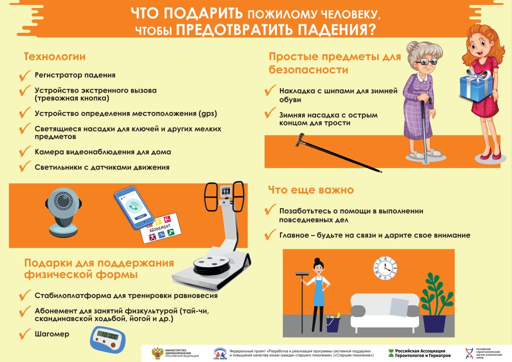 Особое внимание необходимо уделять вопросам профилактики остеопороза, снижения сенсорных функций (слух, зрение), когнитивных нарушений, снижения мышечной массы и падений пожилых и бытового травматизма.