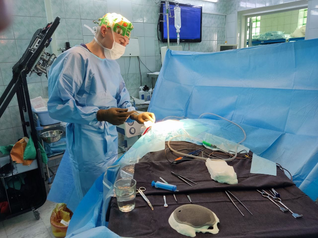 Для пациентки была индивидуально изготовлена специальная титановая пластина и 25 мая успешно имплантирована врачами нейрохирургического отделения №1.