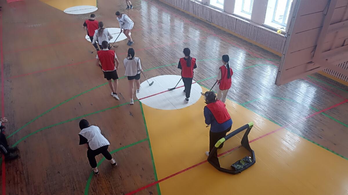 Молодые люди устроили состязание в новом для себя виде спорта: это одна из разновидностей хоккея с мячом. Участники матча бегали по спортзалу с клюшками наперевес и пытались забить мяч в ворота соперников. Они выкладывались на полную и получали удовольствие от соревнования, удивив болельщиков серьёзным настроем.