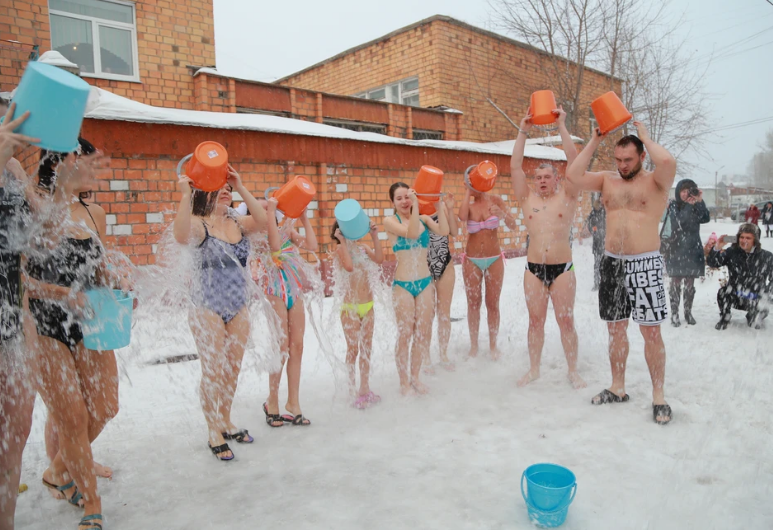 В этом году томичи обливали себя из вёдер холодной водой при минусовой температуре. Несмотря на это, желающих набралось немало: участие в закаливающей водной процедуре принимали мужчины, женщины и даже дети.