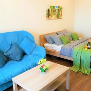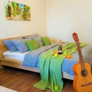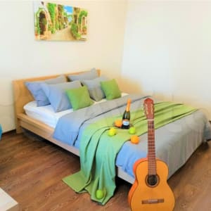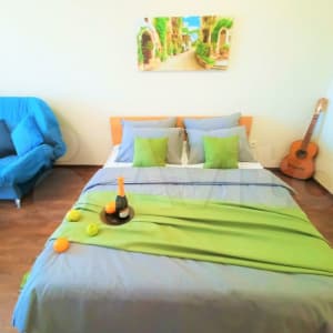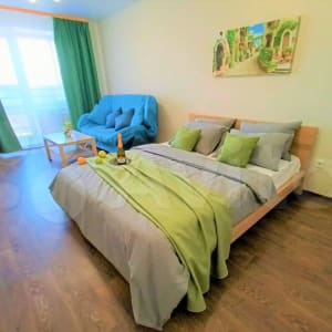 - Высокоскоростной интернет wifi, спутниковое ТВ, кухня, большая кровать с ортопедическим матрасам, диван, стиральная машина, микроволновая печь, холодильник;